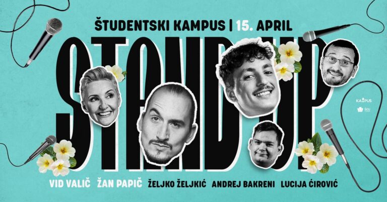 Drage študentke, cenjeni študenti! Z bližanjem pomladi prihajajo tudi večeri, polni dobre volje in smeha. Na Študentski kampus 𝘃 𝘀𝗿𝗲𝗱𝗼, 𝟭𝟱. 𝗮𝗽𝗿𝗶𝗹𝗮 prihaja večer stand-up komedije, ki bo nedvomno poskrbel za noro dozo zabave. Pod velikim ogrevanim šotorom nas bo…